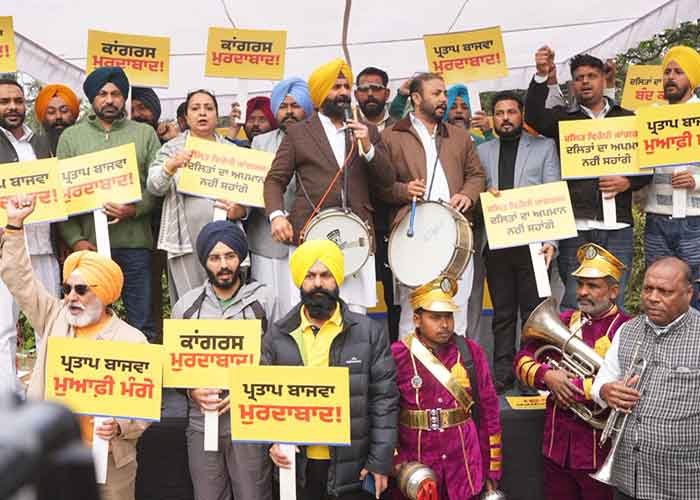 Simultaneously, under the leadership of AAP leader Joban Randhawa, a separate protest was also held outside Partap Singh Bajwa’s residence in Qadian, Gurdaspur.