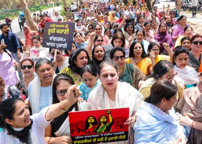 Hundreds of women from across Punjab, led by state BJP working President Ashwani Sharma, on Saturday marched towards the residence of Chief Minister Bhagwant Singh Mann here, seeking an explanation from the Aam Aadmi Party for opposing the Nari Shakti Vandan Adhiniyam, the bill providing 33 per cent reservation for women in the Parliament.