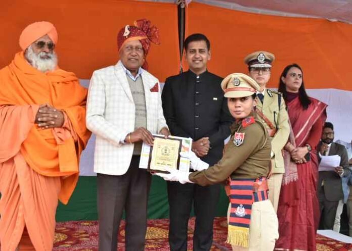 On the occasion of the 77th Republic Day, Punjab’s Mining and Geology, Water Resources, and Land & Water Conservation Minister Barinder Kumar Goyal today unfurled the National Flag during the district-level function held at the local Guru Gobind Singh Stadium.