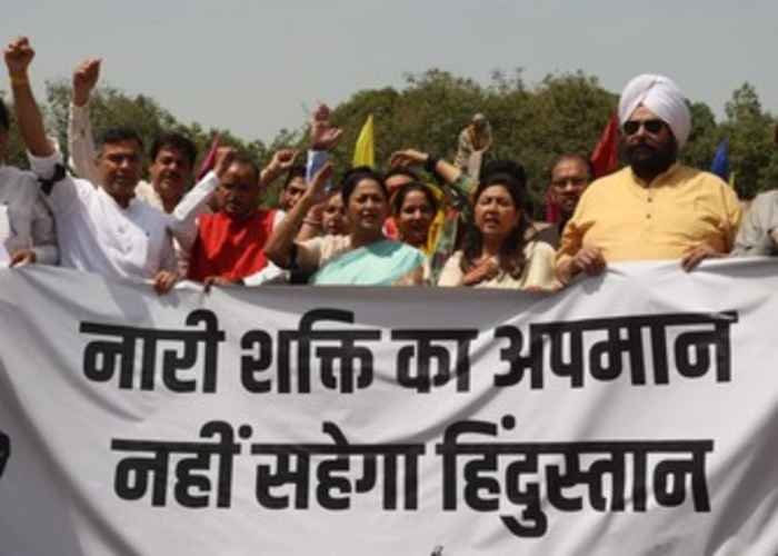 The protest highlighted the government’s push for women’s political representation and criticism of opposition parties for not supporting the measure.