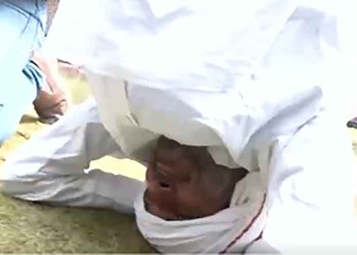 In front of the Gandhi statue, the legislator performed a “Sheershasana” (prolonged headstand), which he described as Gandhian penance and Satyagraha against perceived injustice.