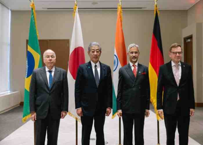 External Affairs Minister S. Jaishankar participated in the G4 Foreign Ministers’ meeting held in New York, alongside his counterparts from Japan, Germany, and Brazil.
