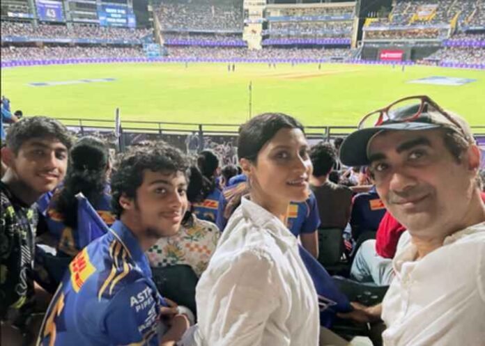 Ranvir who shared the picture on his social media account, captioned it as, “So happy we were there to see @mumbaiindians win today!”