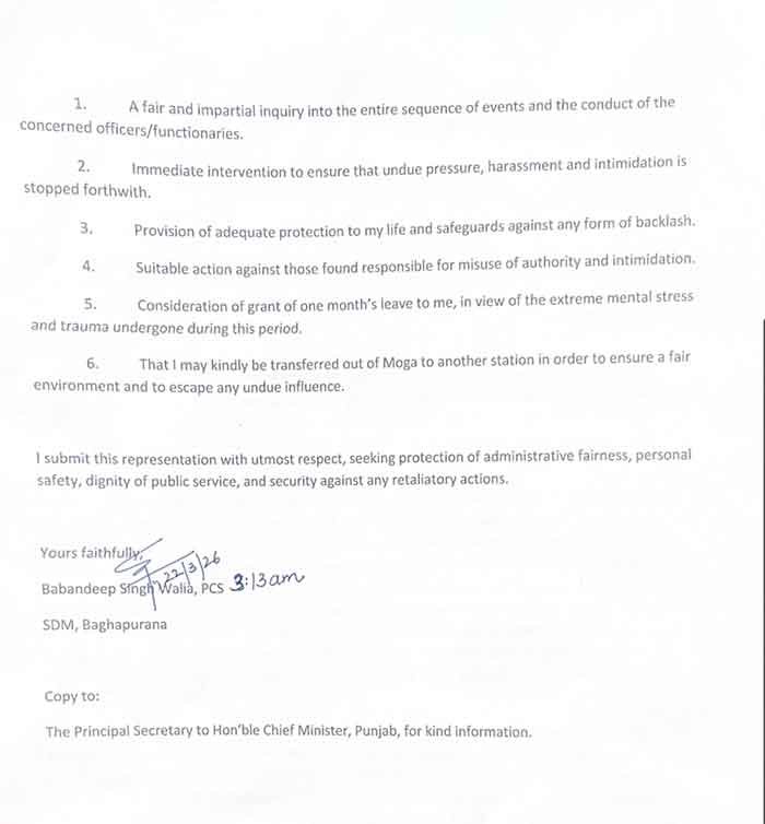 The friction reportedly stems from the Chairperson and Vice-Chairperson elections of the Baghapurana Panchayat Samiti scheduled for March 17, 2026. According to the SDM, the election process could not be completed due to a “serious law and order situation” at the venue. Despite reporting the safety concerns to DC Sagar Setia, Walia claims he has since been subjected to relentless pressure.