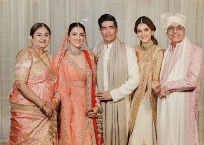 Sharing some photos of her and her family members posing with the designer, Kriti expressed, “Special post for a special friend @manishmalhotra05 !!! Thank you for dressing up my whole family so beautifully for the hindu wedding! (sic)”