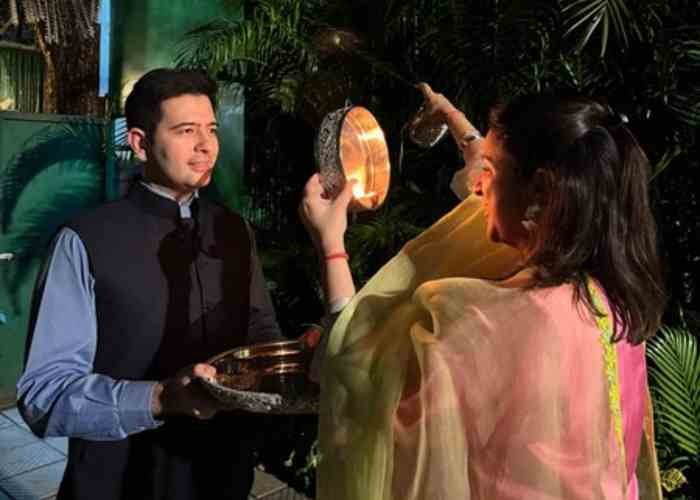 The photos gave fans a glimpse of the intimate festivities. In one of the frames, the actress was seen performing the customary ritual of sighting her husband through a sieve, while Raghav held a pooja thali. Another candid moment showed the couple sitting together, sharing a warm exchange, capturing the essence of their first Karwa Chauth as parents-to-be.