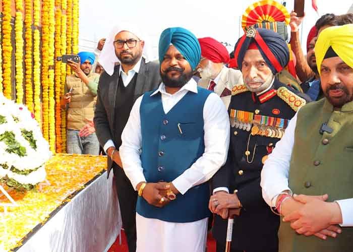 On this occasion, at the memorial of the great General Sham Singh Attariwala built at India Gate, Cabinet Minister S. Harbhajan Singh ETO, MLA Dr. Jasbir Singh Sandhu, Brigadier S.S. Jamwal, Commander 54 Infantry Brigade, Colonel Sumit Sharma, Deputy Commissioner Mr. Dalwinderjit Singh, Police Commissioner S. Gurpreet Singh Bhullar, SDM S. Mankanwal Singh Chahal, Colonel Harinder Singh, Colonel Kuldeep Singh paid tributes to the statue of martyr Sardar Sham Singh Attariwala. On this occasion, the soldiers of Punjab Police also saluted the great General Sardar Sham Singh Attariwala by lowering their weapons.