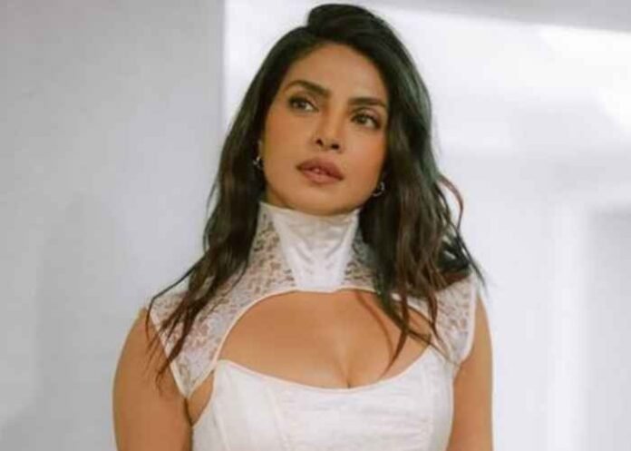 For the occasion, Priyanka opted for a custom gown by Dior. The outfit followed a classic Hollywood aesthetic with modern detailing. The gown was strapless and white, designed with a structured corset-style bodice that shaped the upper silhouette and highlighted the waist. From the midsection, the dress flowed into a long skirt featuring a dramatic thigh-high slit, which created movement and added a contemporary edge to the otherwise bridal-style design. Along the slit and lower portion of the gown, black-and-white feathered or tulle detailing added texture and visual contrast to the monochrome look.