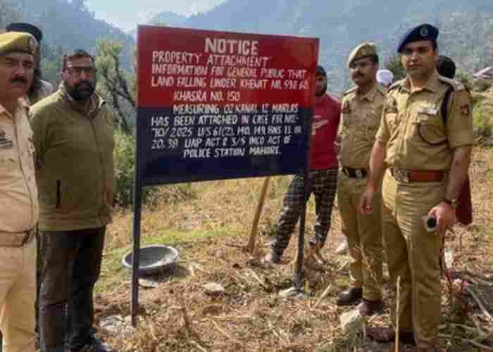 “As part of this decisive action, 3 kanals and 6 marlas of land, falling under khasra numbers 138 and 150 at Sildhar Mahore, were attached under Section 25 of the Unlawful Activities (Prevention) Act (UA(P)A). This legal action is linked to FIR No. 70/2024 registered at Police Station Mahore, encompassing charges under Sections 61(2), 148, 149 BNS and Sections 13, 18, 20, 38 of UA(P) Act, along with Sections 2/3 of IMCO Act,” the police statement said.