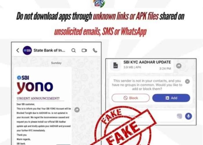 In the fake message, users are allegedly addressed as “Dear SBI customer” and are informed that their YONO account will be blocked due to incomplete Aadhaar details. They are then urged to download the APK file to complete the update. However, experts warn that downloading such files from unverified sources could compromise the security of smartphones and lead to unauthorised access to personal and financial data.