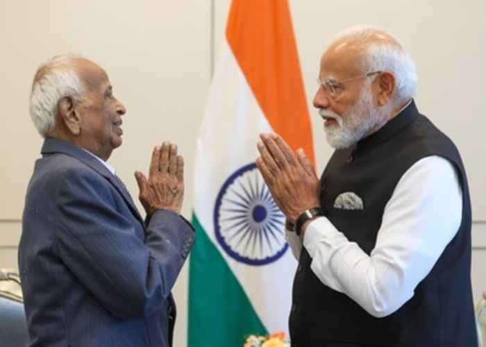Sharing photographs of the interaction on X, PM Modi said, “It was very special to meet INA veteran Shri Jeyaraj Raja Rao. His life is marked by immense courage and sacrifice. Listening to his experiences was very inspiring.”