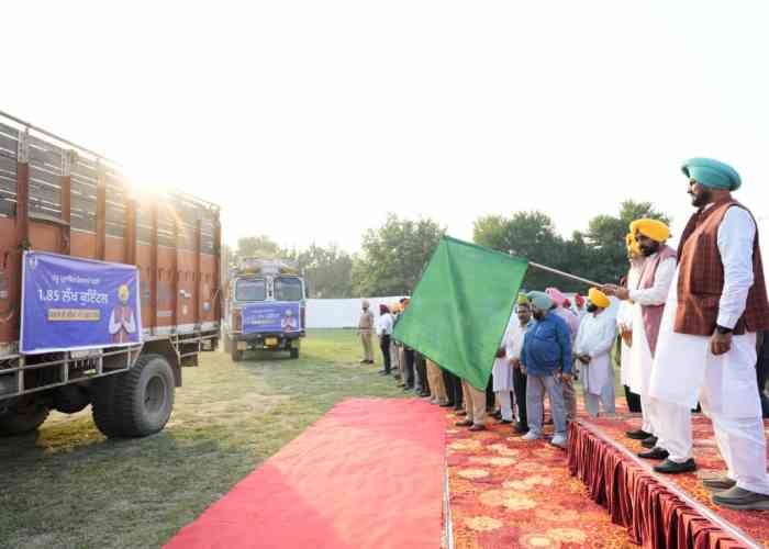 Fulfilling another promise made with the flood victims of the state, the Punjab Chief Minister Bhagwant Singh Mann on Sunday flagged off seven trucks to provide two lakh quintal wheat seeds free of cost to the farmers who have lost their crop in around five lakh acres of land during the recent floods.