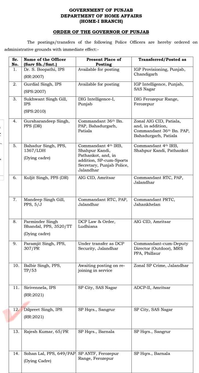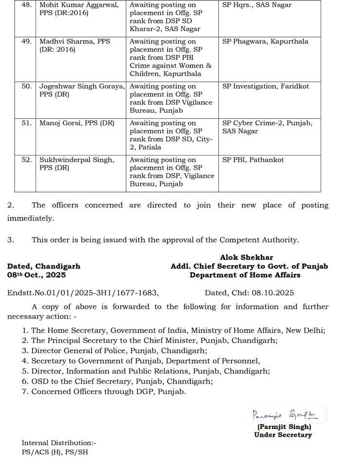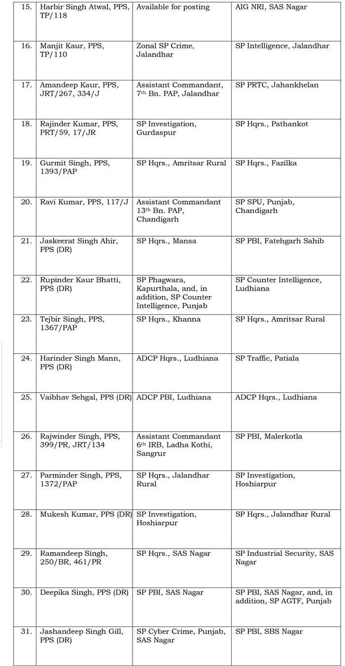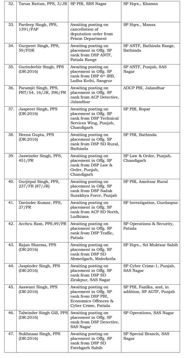 Punjab Government Wednesday transferred 52 IPS, PPS officers of the state with immediate effect.