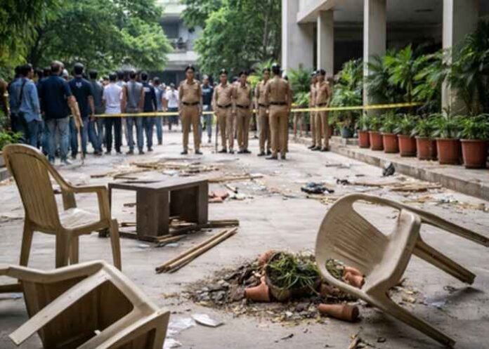 Following the incident on Thursday, Deputy Commissioner of Police Krishna Lalchandani told media persons that members of an organisation had created a disturbance on the campus.