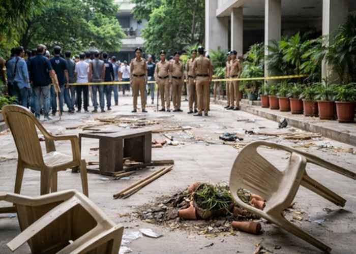 Videos of the incident showed a group of around 50 youths, some carrying sticks, entering the campus and vandalising property. Some of them were seen arguing with faculty members and police personnel. After police intervention, several persons reportedly sat at the college entrance and chanted the Hanuman Chalisa.