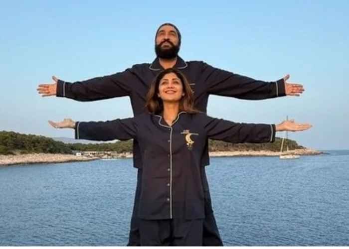Taking to her Instagram, Shilpa uploaded a picture of herself standing with her husband on the edge of a boat with their arms stretched open, just like Jack and Rose did in the James Cameron directorial.