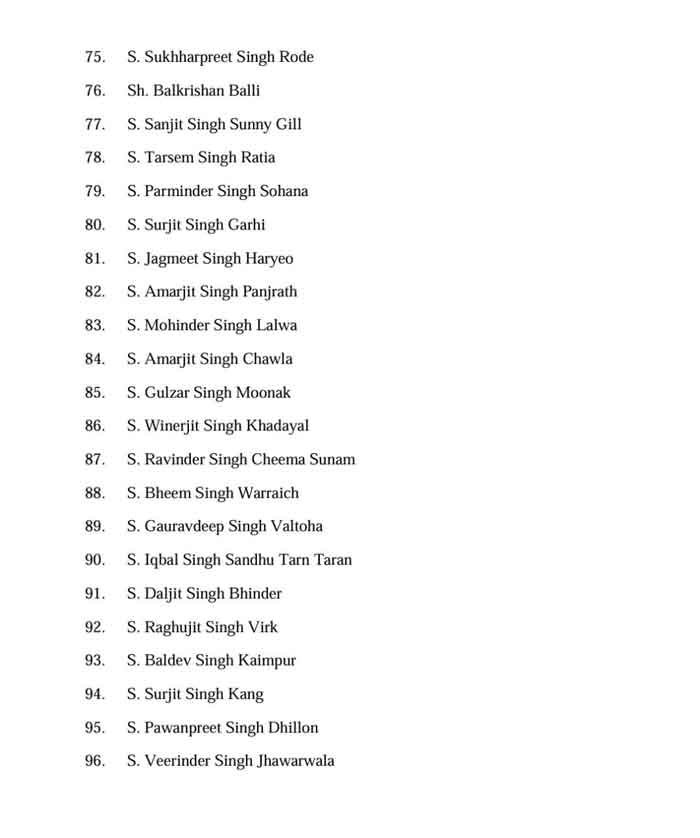 In addition to the earlier announcement of 96 Members of Working Committee Mr Baldev Singh Khehra, senior leader from Phillaur has also been appointed as Member of Working Committee of the party taking the total to 97.