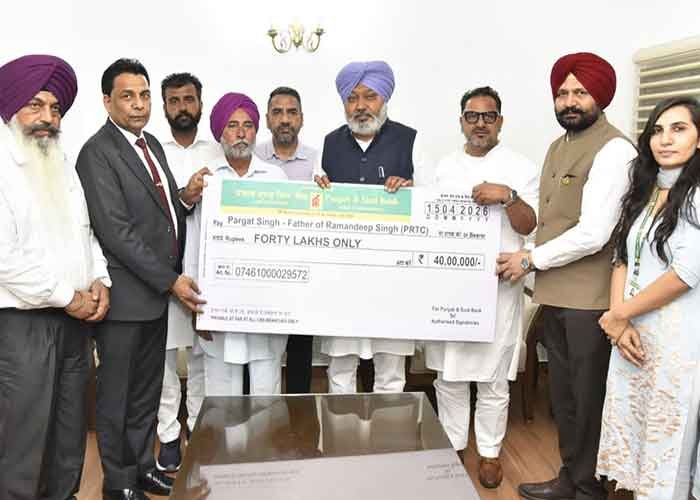 In a solemn gesture of support and institutional responsibility, the Punjab Finance and Transport Transport Minister Harpal Cheema, presented a compensation cheque of ₹40 lakh to the family of the late Ramandeep Singh, a conductor with the PEPSU Road Transport Corporation (PRTC) who tragically lost his life in the line of duty.