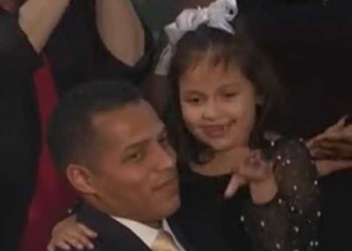 She received a standing ovation when Trump called her up, and her father, Marcus Coleman, held her up.