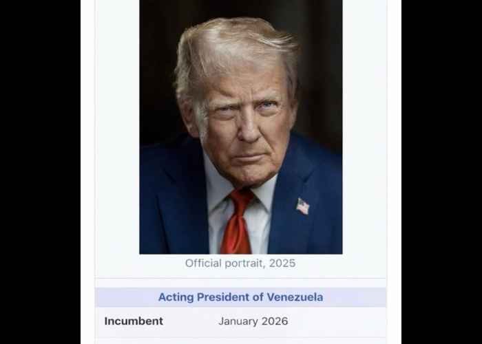 The photo seemed to be of an edited Wikipedia page, where Trump is shown as the ‘incumbent Venezuelan president’ as of January 2026. It also mentions his actual official posts — the 45th and 47th President of the United States.